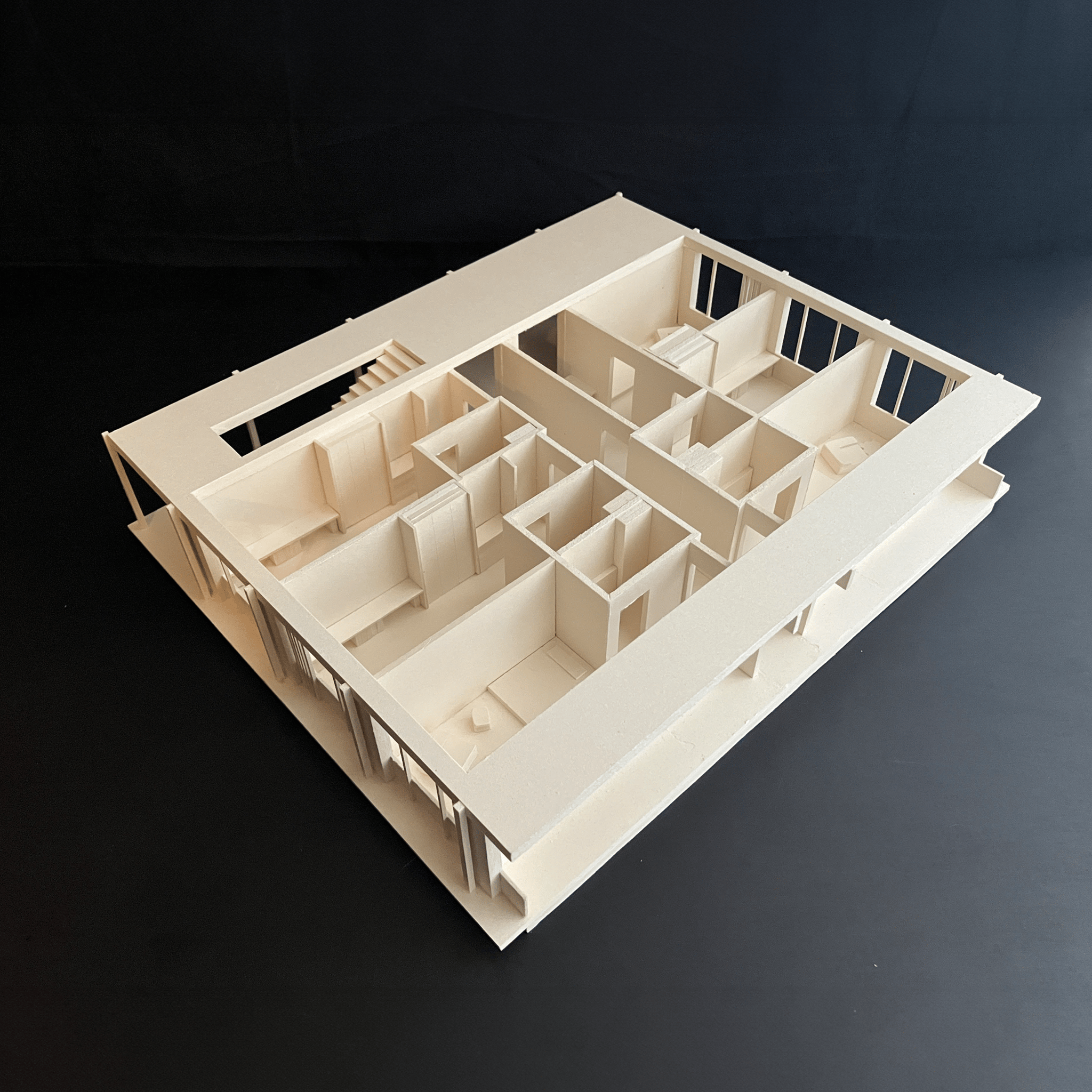 Für das Bildungshaus+ haben wir in der clar&müller Werkstatt Modelle im Maßstab 1:50 als Arbeits- und Präsentationsmodelle gebaut. Für das Modell im Maßstab 1:200 stand uns das großartige Team der Modellbautischlerei Stenzeleit zur Verfügung. Wir bedanken uns herzlich für die tolle Zusammenarbeit!